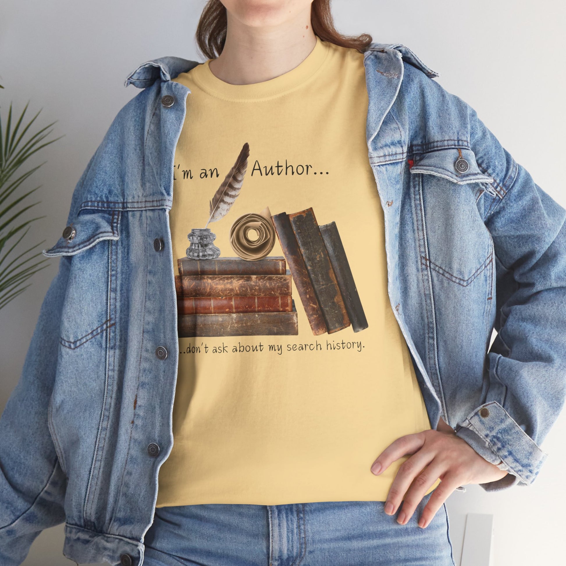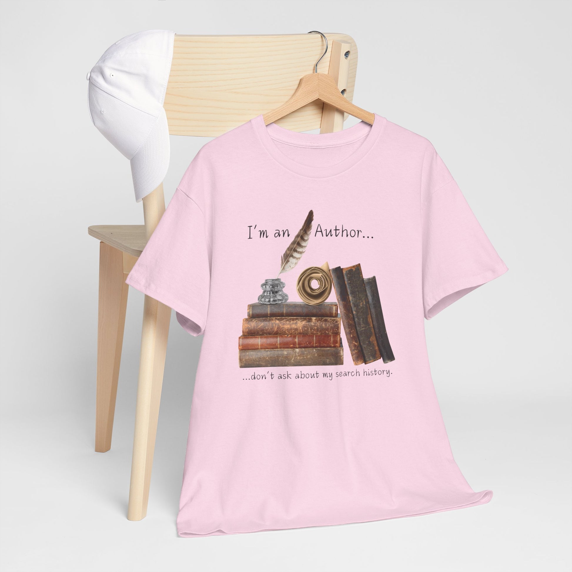 This T-Shirt is perfect for authors who want to humorously hint at the mysteries of their search history. It offers a comfy and relaxed fit with a neat crew neckline for a timeless look. Ideal for adults, this tee is made with high-quality cotton and is ethically produced, ensuring sustainability and durability. Suitable for casual wear or semi-formal occasions, this tee is a must-have for any author's wardrobe.