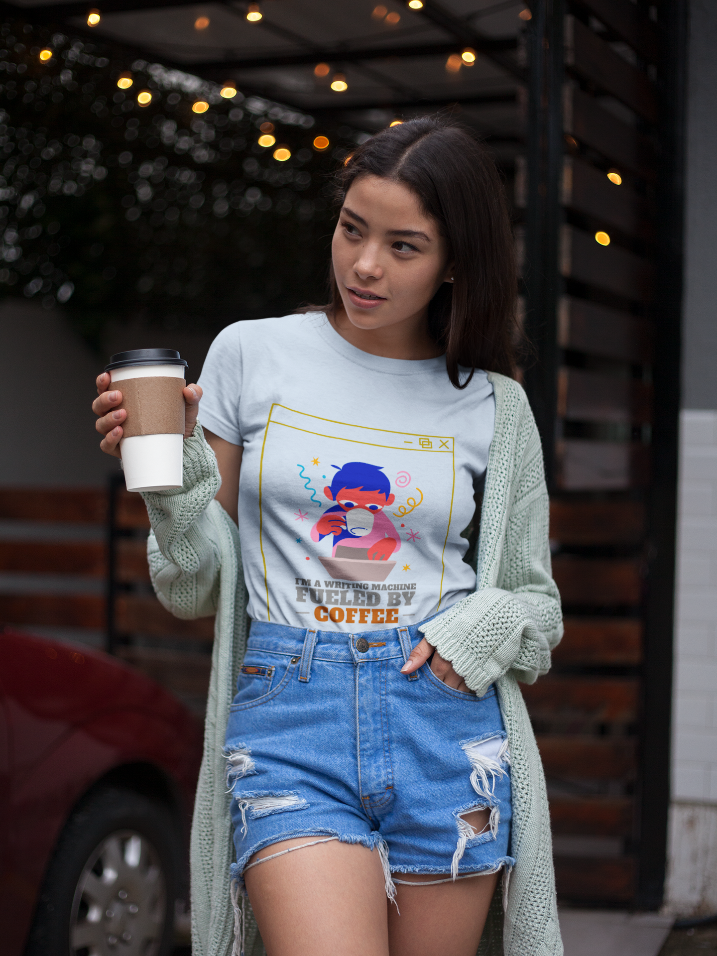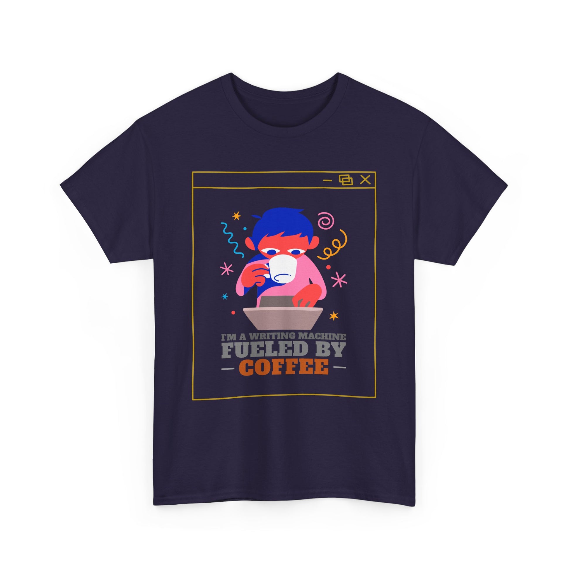 A writing machine fueled by coffee, this tee exudes creativity and comfort. Perfect for writers, bloggers, and coffee enthusiasts, this tee is ideal for casual wear or as a statement piece. Great for everyday use, gift-giving, and celebrating National Coffee Day!