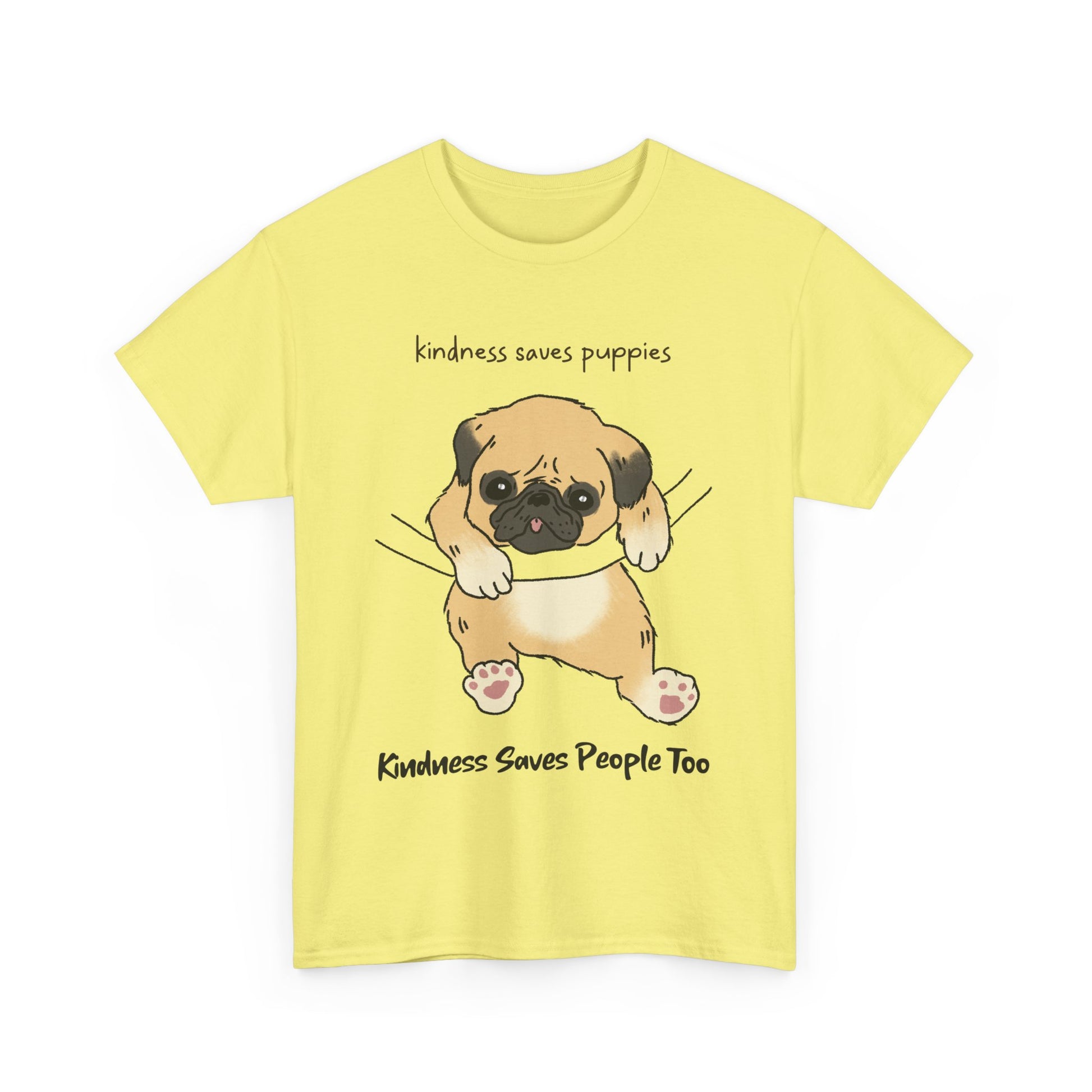 Celebrate kindness and compassion with this adorable Unisex Heavy Cotton Tee! Featuring a heartwarming pug graphic that reads, "Kindness Saves Puppies, Kindness Saves People Too," this shirt is not just a fashion statement; it’s a way to spread a positive message. Perfect for casual outings, relaxed gatherings, or even cozy nights at home, it brings a light-hearted vibe to any wardrobe. Ideal for animal lovers, humanitarian advocates, and anyone who believes in the power of kindness, this tee makes a thoughtful gift for birthdays, holidays, or just because. Soft and comfortable, it is designed for year-round wear, ensuring you look and feel good while championing a great cause!