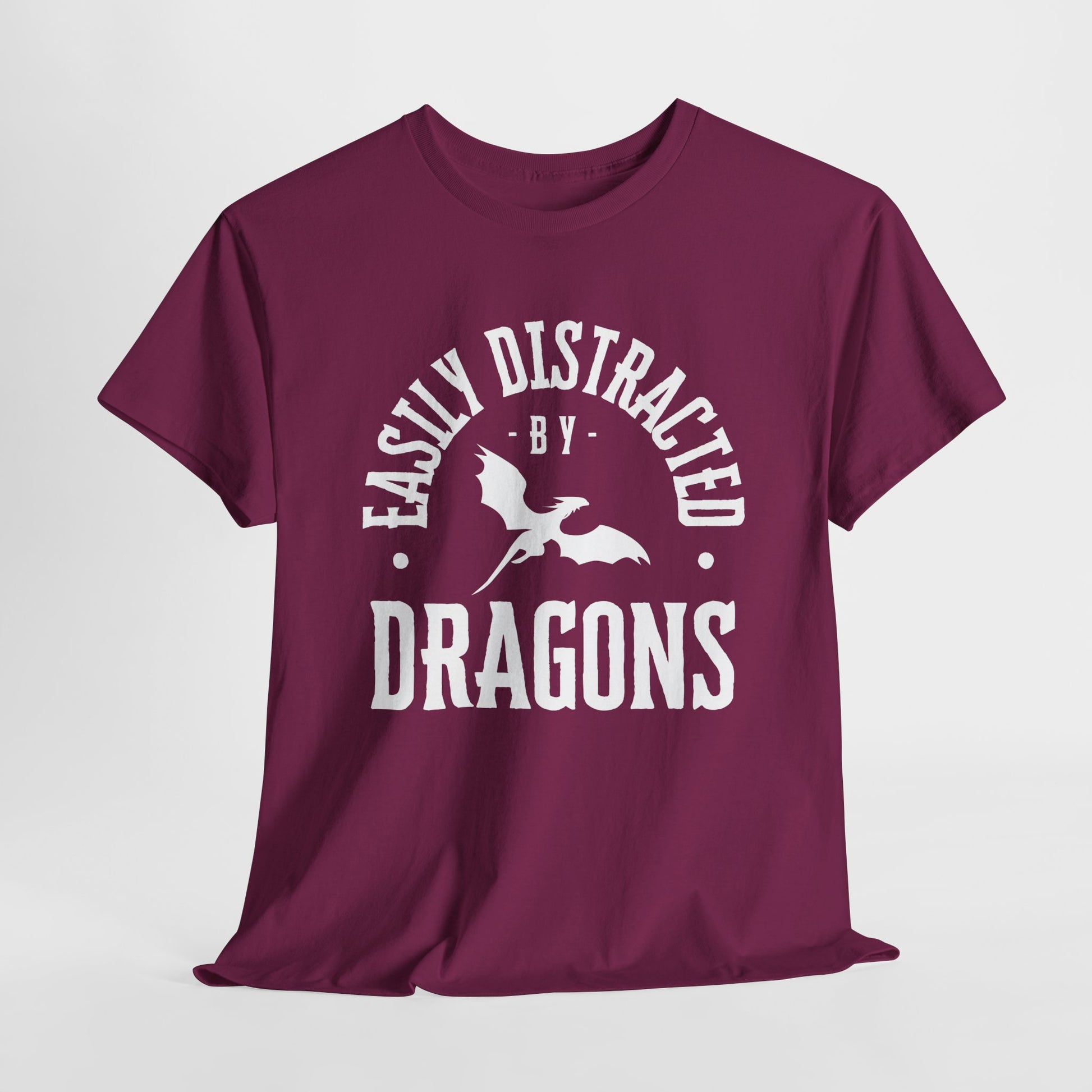 Easily Distracted by Dragons Unisex Heavy Cotton Tee - Funny Graphic T-Shirt for Fantasy Lovers