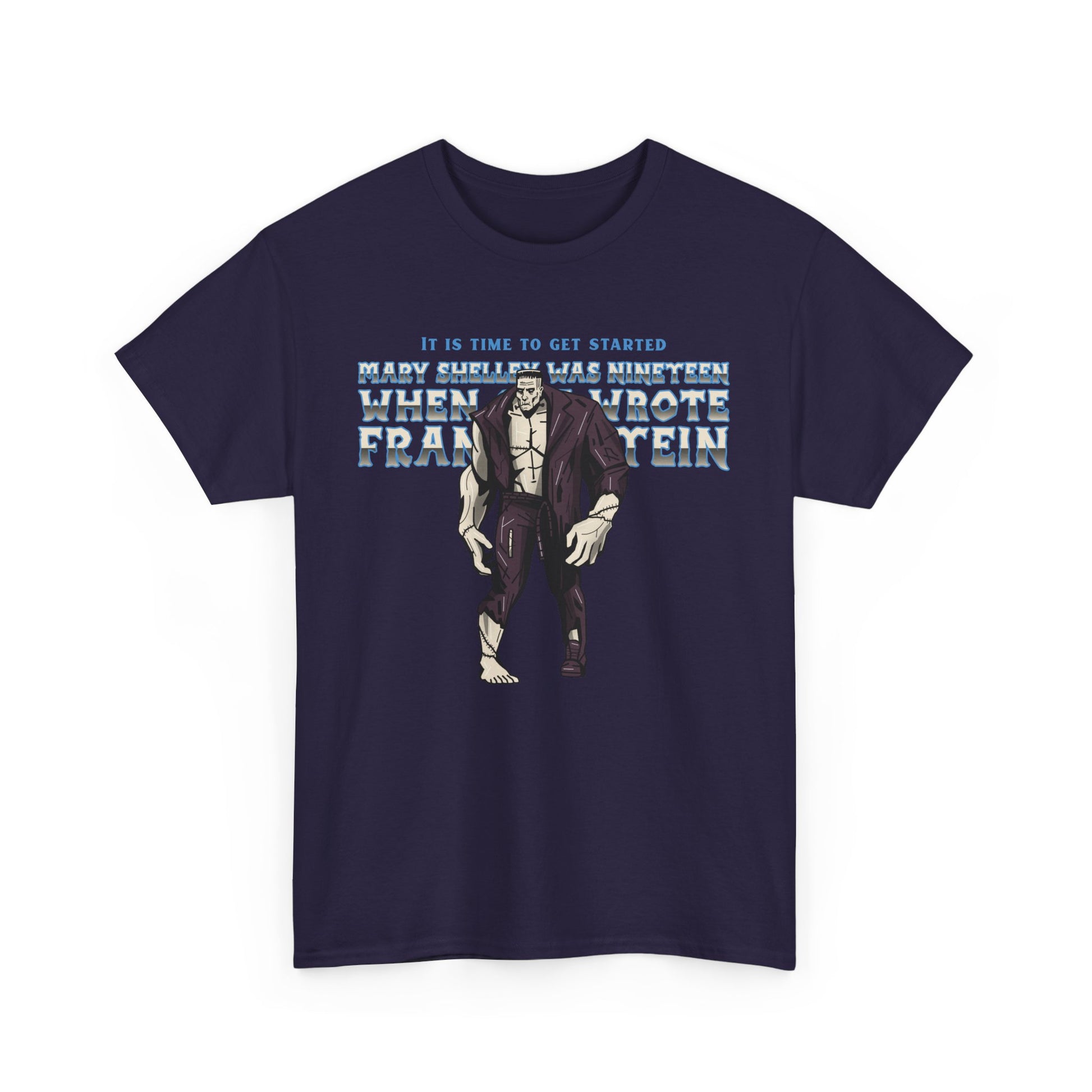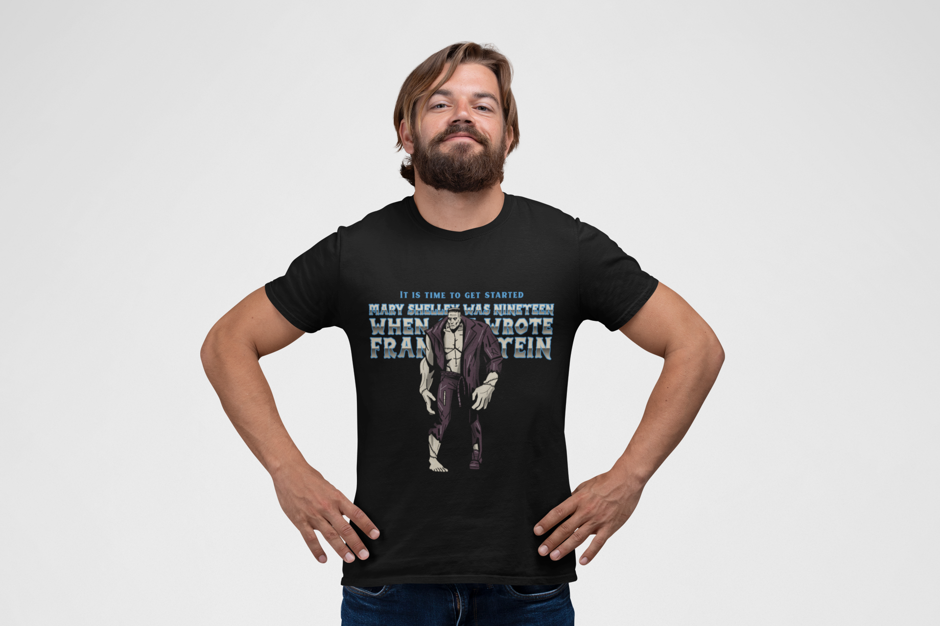 A classic T-shirt featuring a quote by Mary Shelley, perfect for literature enthusiasts and fans of Frankenstein. This tee offers a comfortable fit and versatile style that can be worn for casual outings or as a statement piece. Ideal for book lovers and writers, this T-shirt is a great conversation starter and a unique addition to any wardrobe. Perfect for Halloween, book club meetings, and everyday wear.