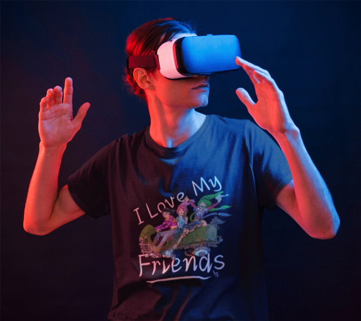 This Tee features the art of Bryon Gibson with the phrase 'I love my friends'. It exudes a friendly and casual vibe, perfect for everyday wear or casual gatherings with friends. Ideal for adults looking for a comfortable and stylish wardrobe addition. This Tee is relevant for Friendship Day, birthdays, and casual hangouts.
