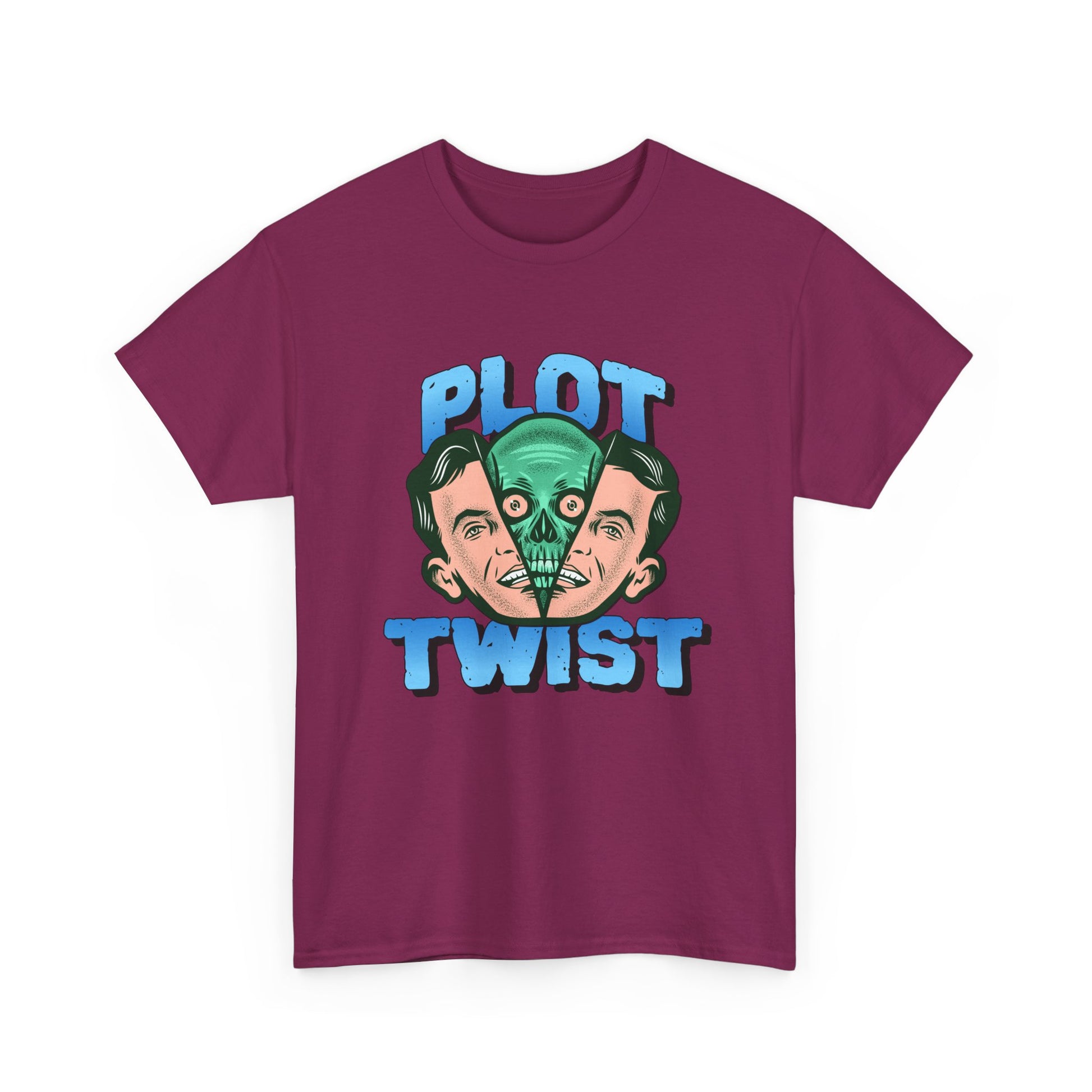 This funny T-shirt with a 'plot twist' design adds a touch of humor to your wardrobe. The unisex heavy cotton tee is perfect for adults looking for comfort and style. It is suitable for casual wear and can be worn on various occasions.