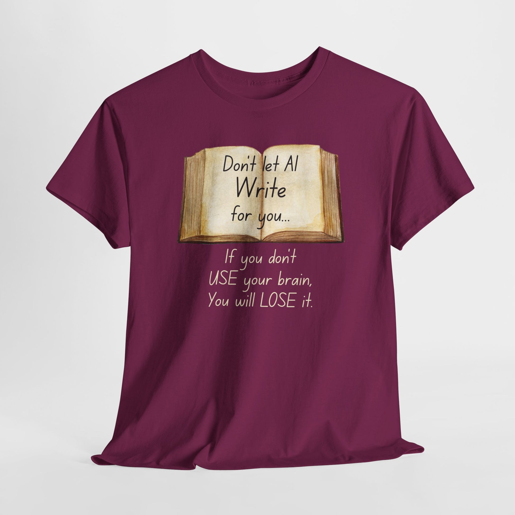 Funny Unisex Heavy Cotton Tee - "Don't Let AI Write for You" Quote T-Shirt