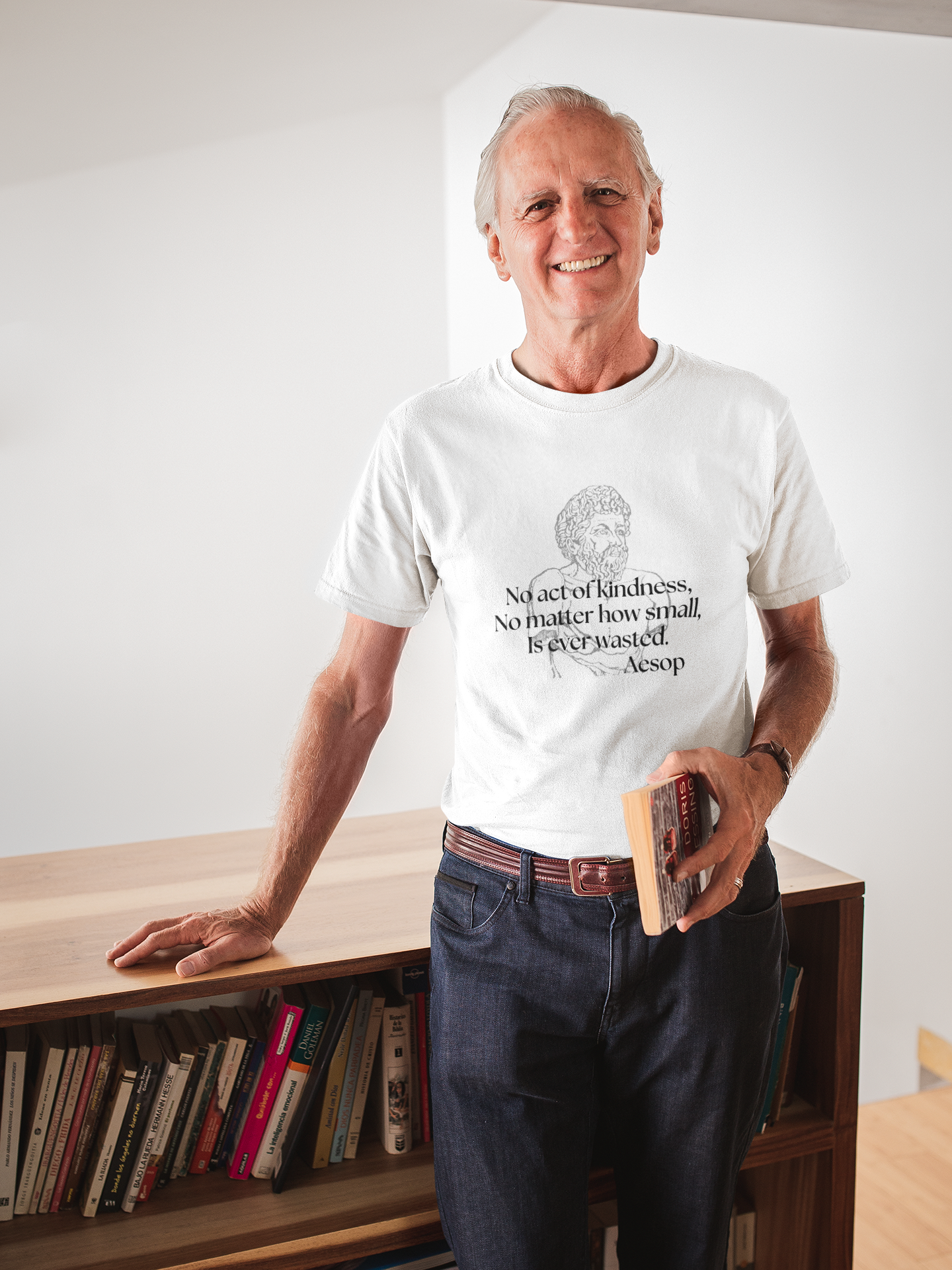 Perfect for men and women alike, this shirt radiates a laid-back charm that appeals to all ages. It makes an ideal gift for special occasions like birthdays, holidays, or just because. With a timeless design and a message of kindness inspired by Aesop, it’s perfect for anyone looking to spread positivity in their everyday life.
