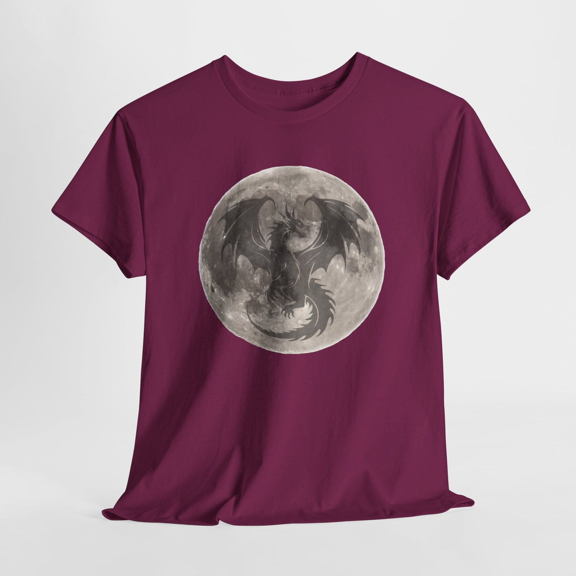 Mystic Moon Dragon Tee - Unisex Heavy Cotton Shirt, Goth Aesthetic, Fantasy Fans, Halloween Costume, Layering Basics