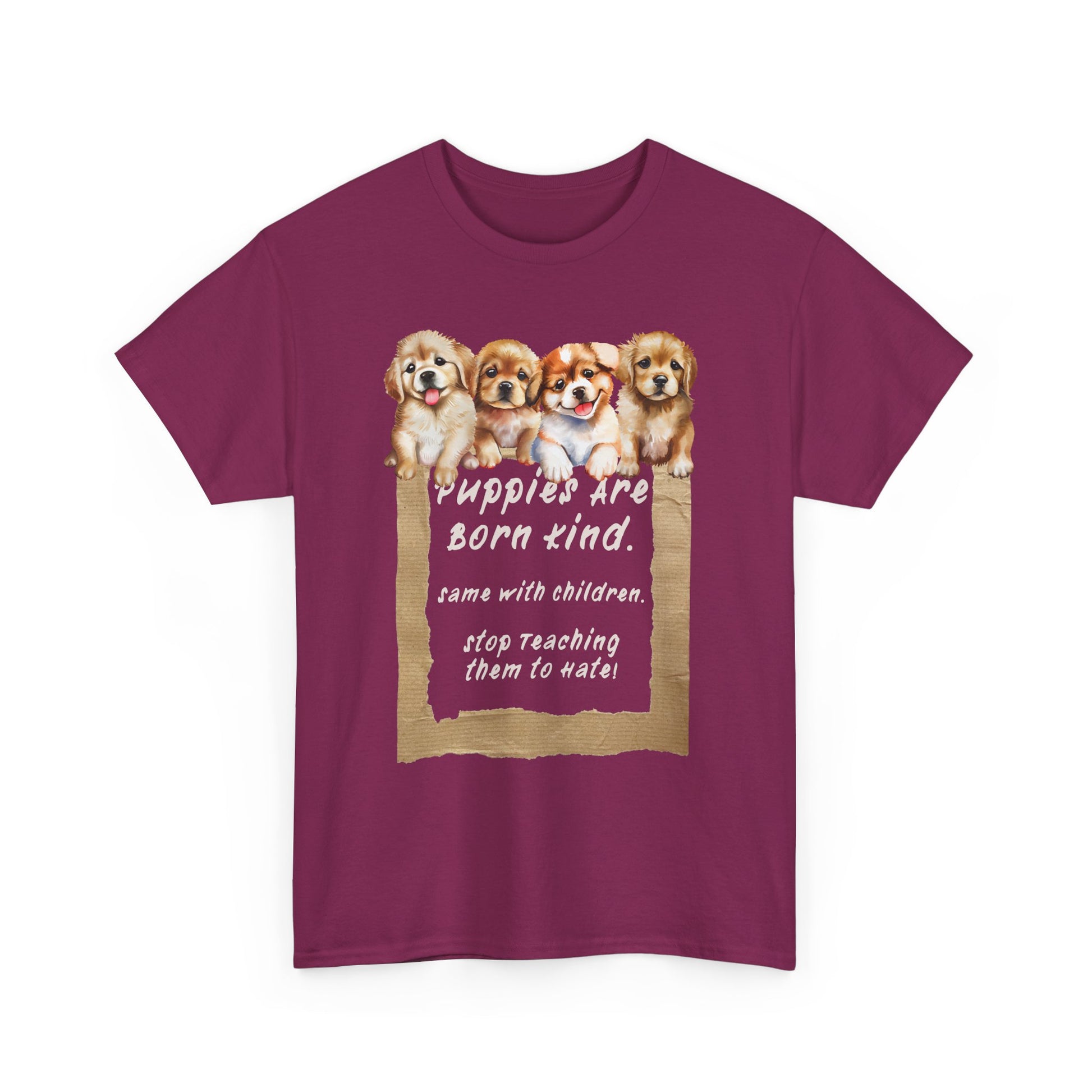 Puppy Love Unisex Heavy Cotton Tee - 'Puppies Are Born Kind' Design