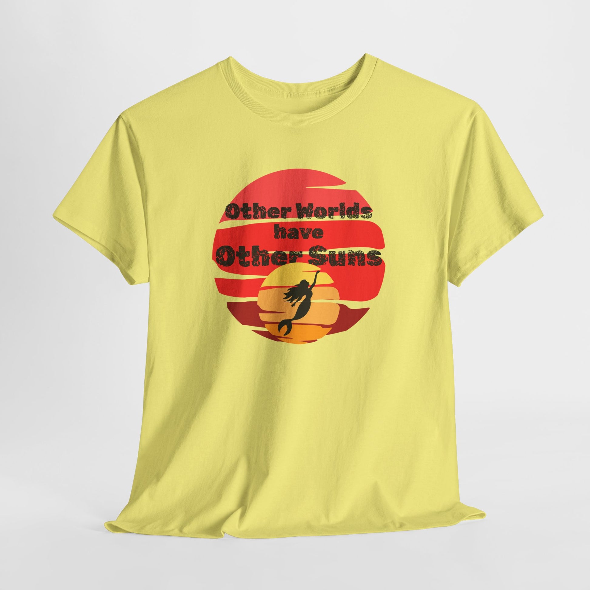 Retro Sunset Unisex Heavy Cotton Tee - 'Other Worlds Have Other Suns'