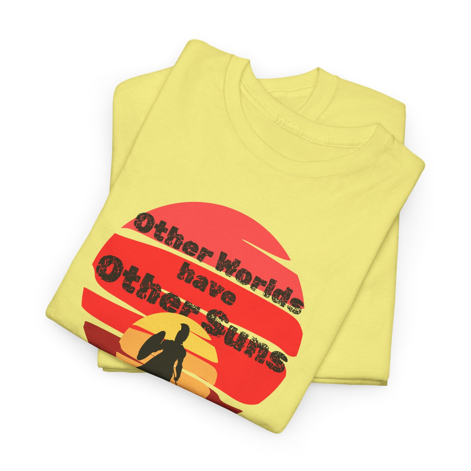 Retro Sunset Unisex Heavy Cotton Tee - 'Other Worlds Have Other Suns' Design