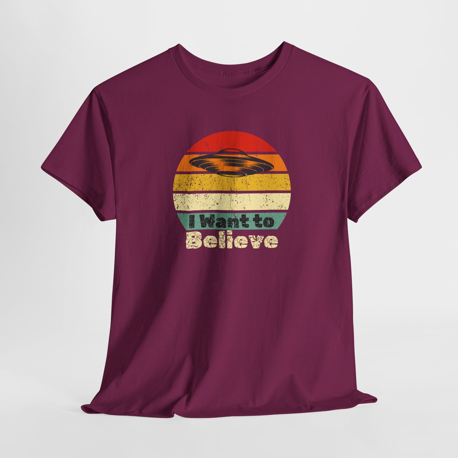 Retro UFO T-Shirt, Unisex Cotton Shirt, I Want to Believe Tee, Alien Fan Gift, Casual Outfit, Vintage Style Tee