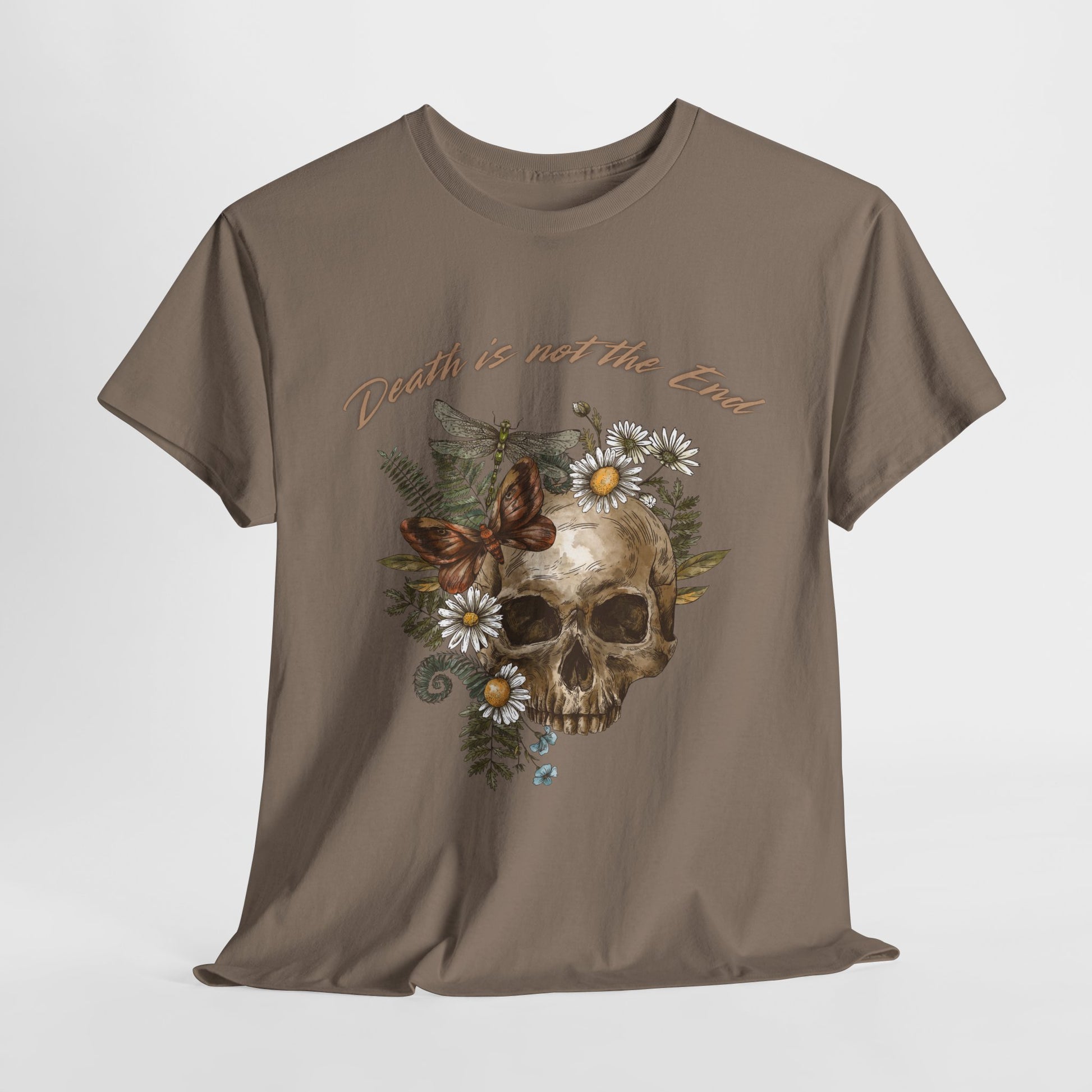 Skull Floral Unisex Heavy Cotton Tee, Casual Graphic Tee, Death Not the End Shirt, Dark Aesthetic T-Shirt, Gothic Gift Idea, Halloween