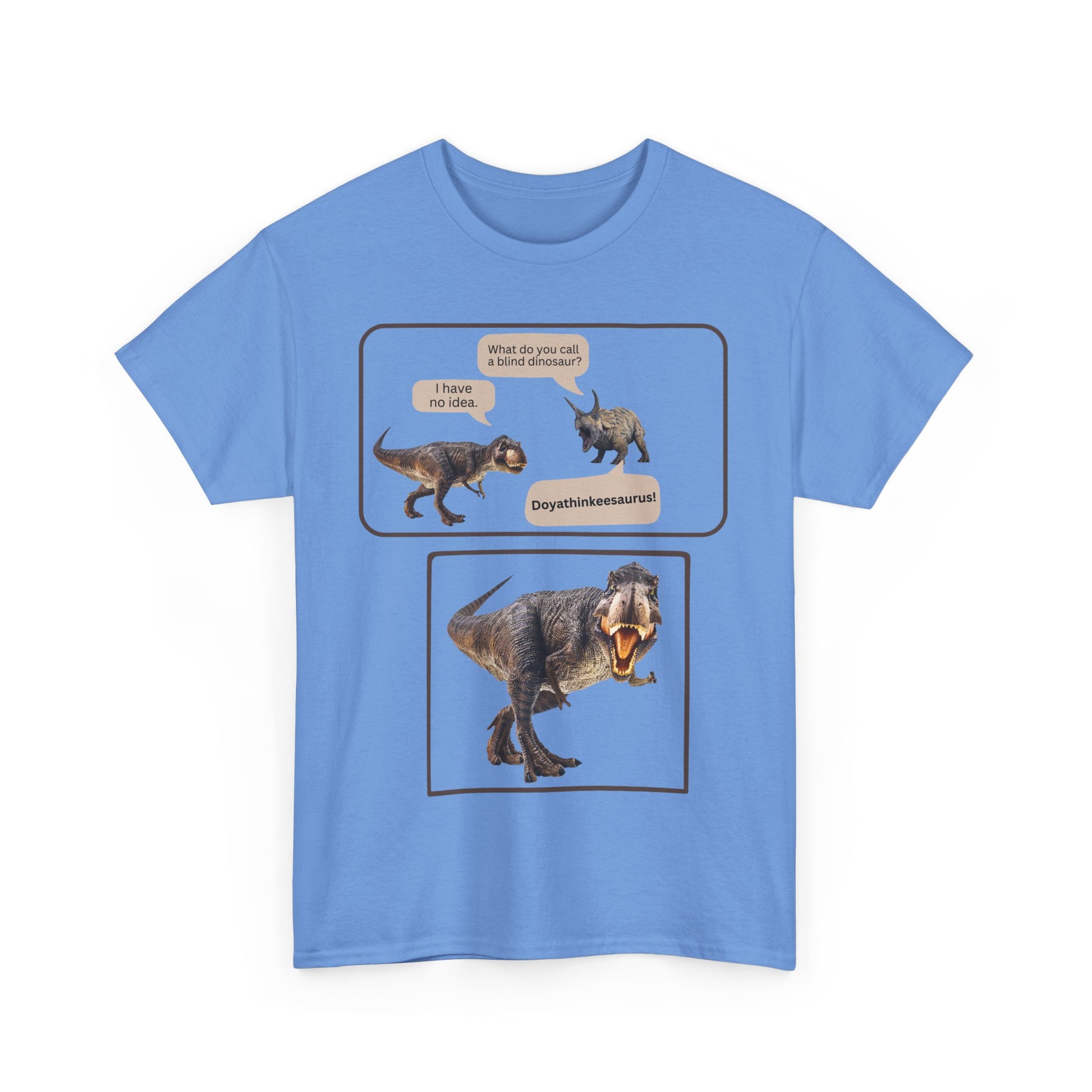 A Tee featuring a dumb dinosaur joke, perfect for adding a touch of humor to your everyday outfit. This tee is ideal for individuals who enjoy quirky and fun designs, suitable for casual wear or as a statement piece. It is relevant for holidays, birthdays, and everyday wear.