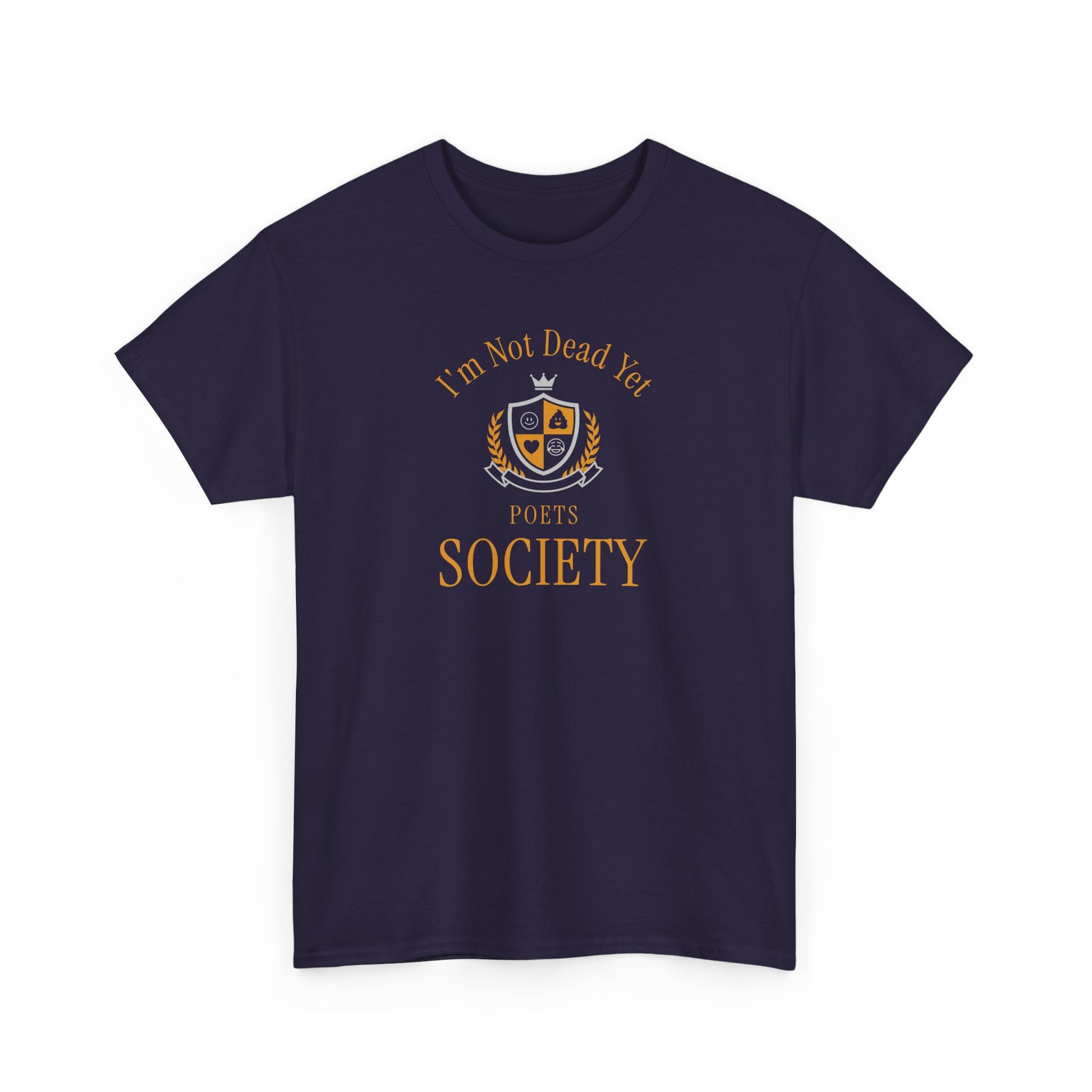 Express your love for poetry and literature with this unique 'I'm not dead yet poets society' T-Shirt. The classic fit and versatile design make it suitable for casual wear or as a statement piece. Perfect for poetry enthusiasts, writers, and fans of quirky quotes. Ideal for National Poetry Month, World Poetry Day, or any literature-related event.