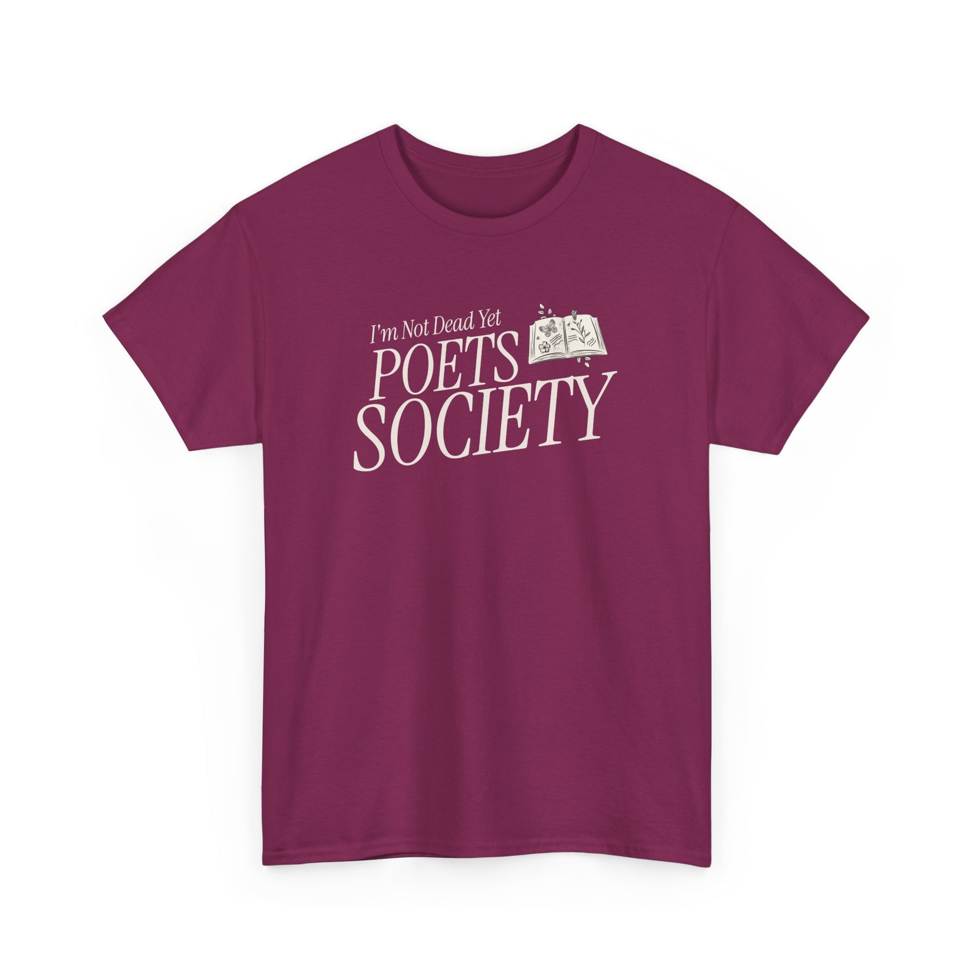 Express your love for poetry and literature with this unique 'I'm not dead yet poets society' T-Shirt. The classic fit and versatile design make it suitable for casual wear or as a statement piece. Perfect for poetry enthusiasts, writers, and fans of quirky quotes. Ideal for National Poetry Month, World Poetry Day, or any literature-related event.