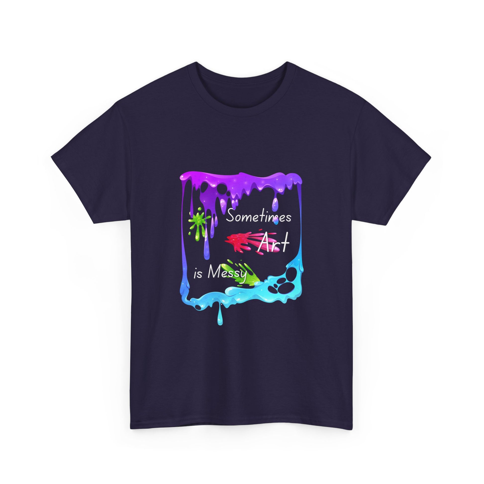 This tee exudes a carefree and artistic vibe with its 'Sometimes Art is Messy' design. Perfect for art enthusiasts, creative minds, and those who appreciate unique and unconventional artwork. Ideal for casual wear, art events, creative workshops, and art-related celebrations.