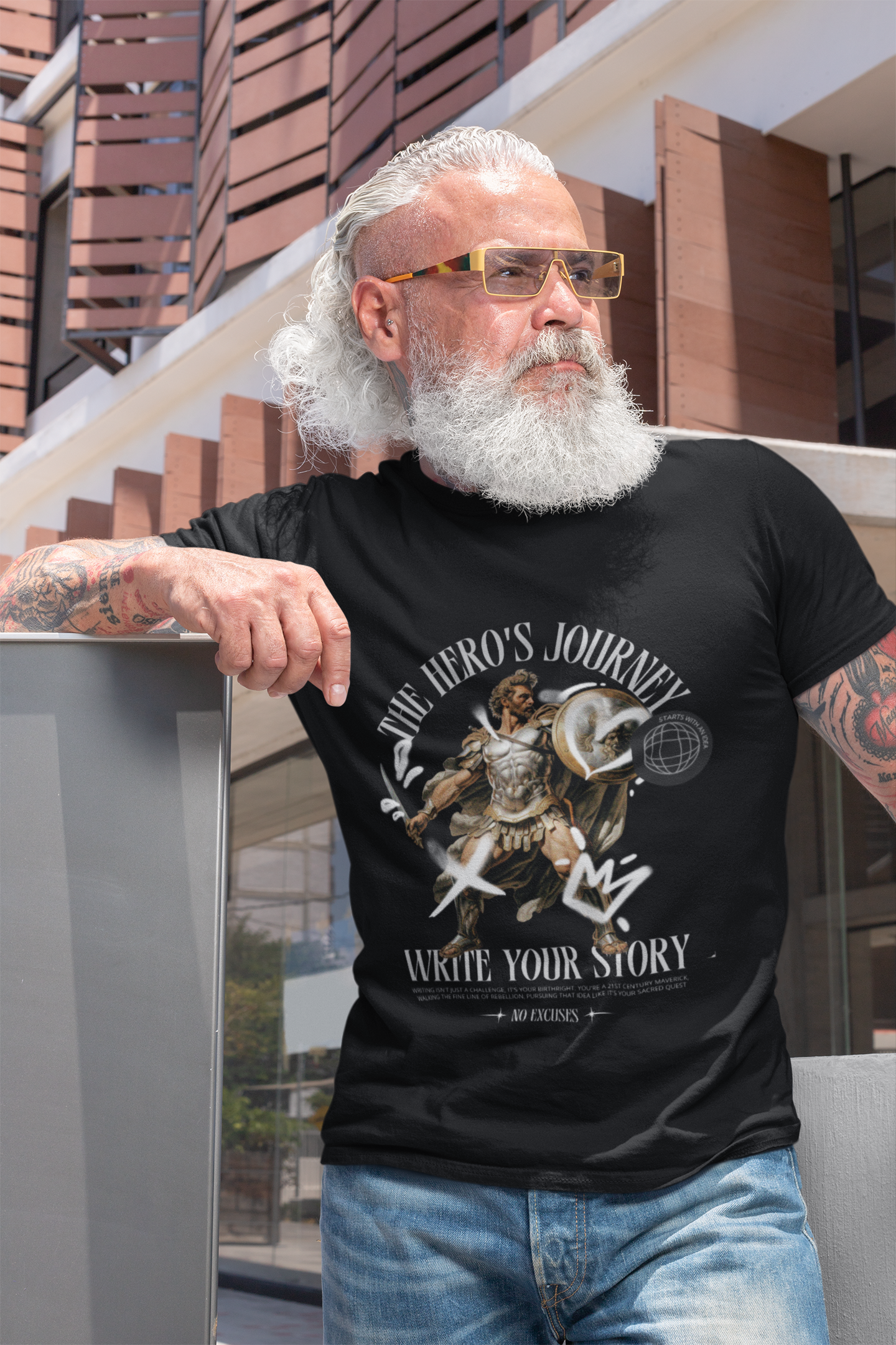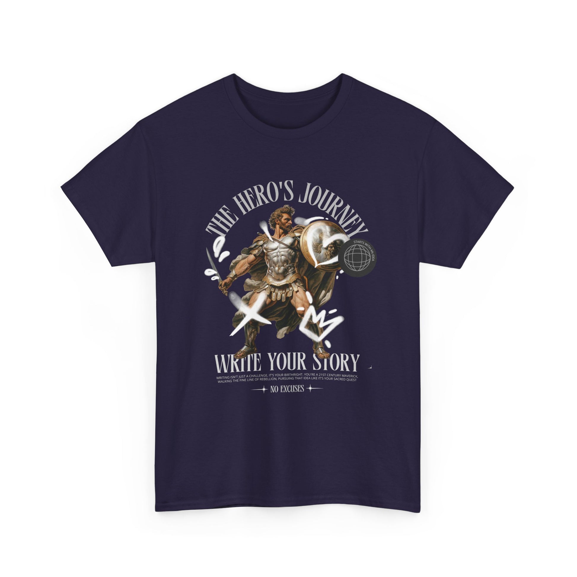 Embark on your hero's journey with this tee featuring an inspiring message. Perfect for writers and creatives, this tee is great for everyday wear, casual outings, and creative brainstorming sessions. Ideal for holidays, birthdays, and special occasions.