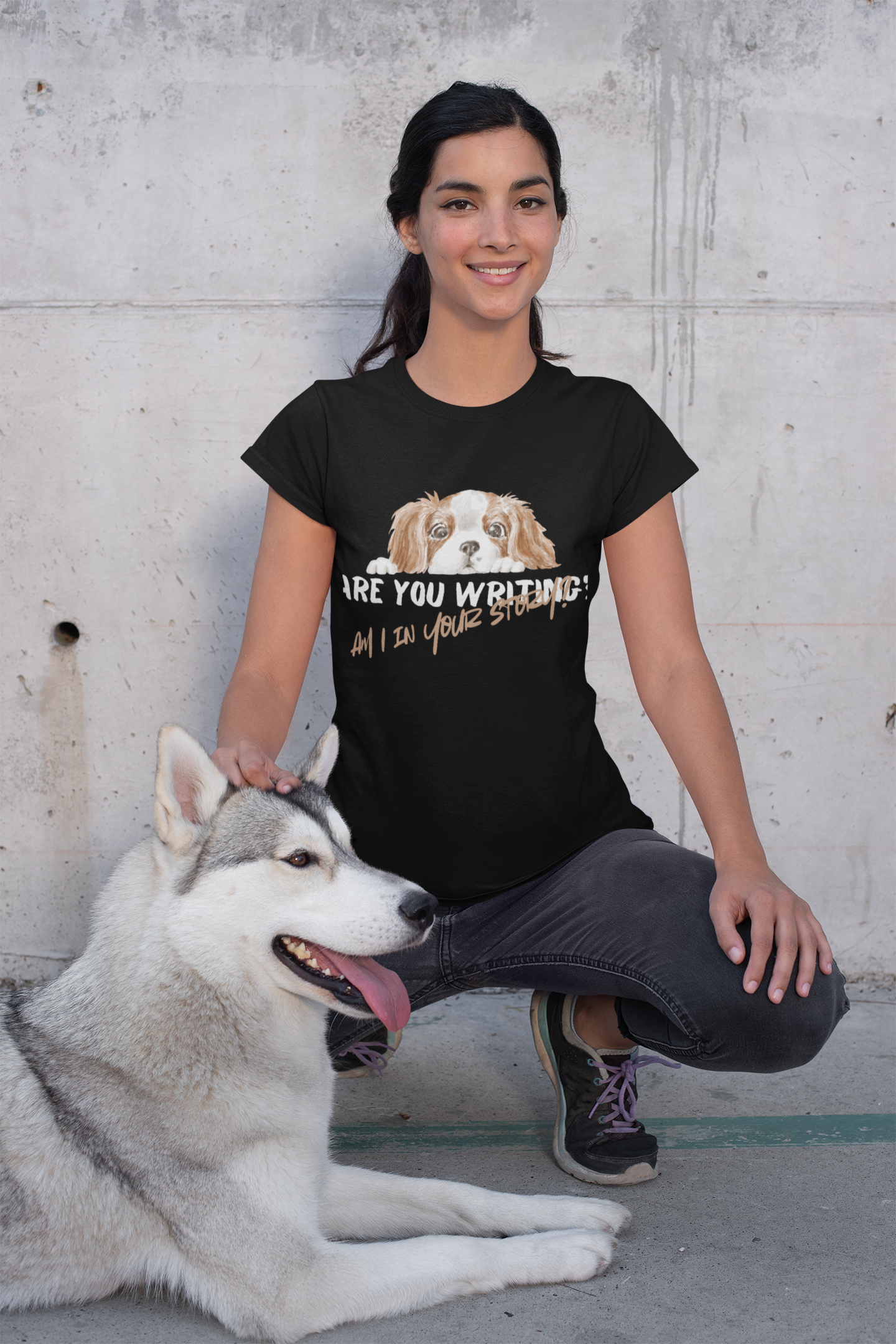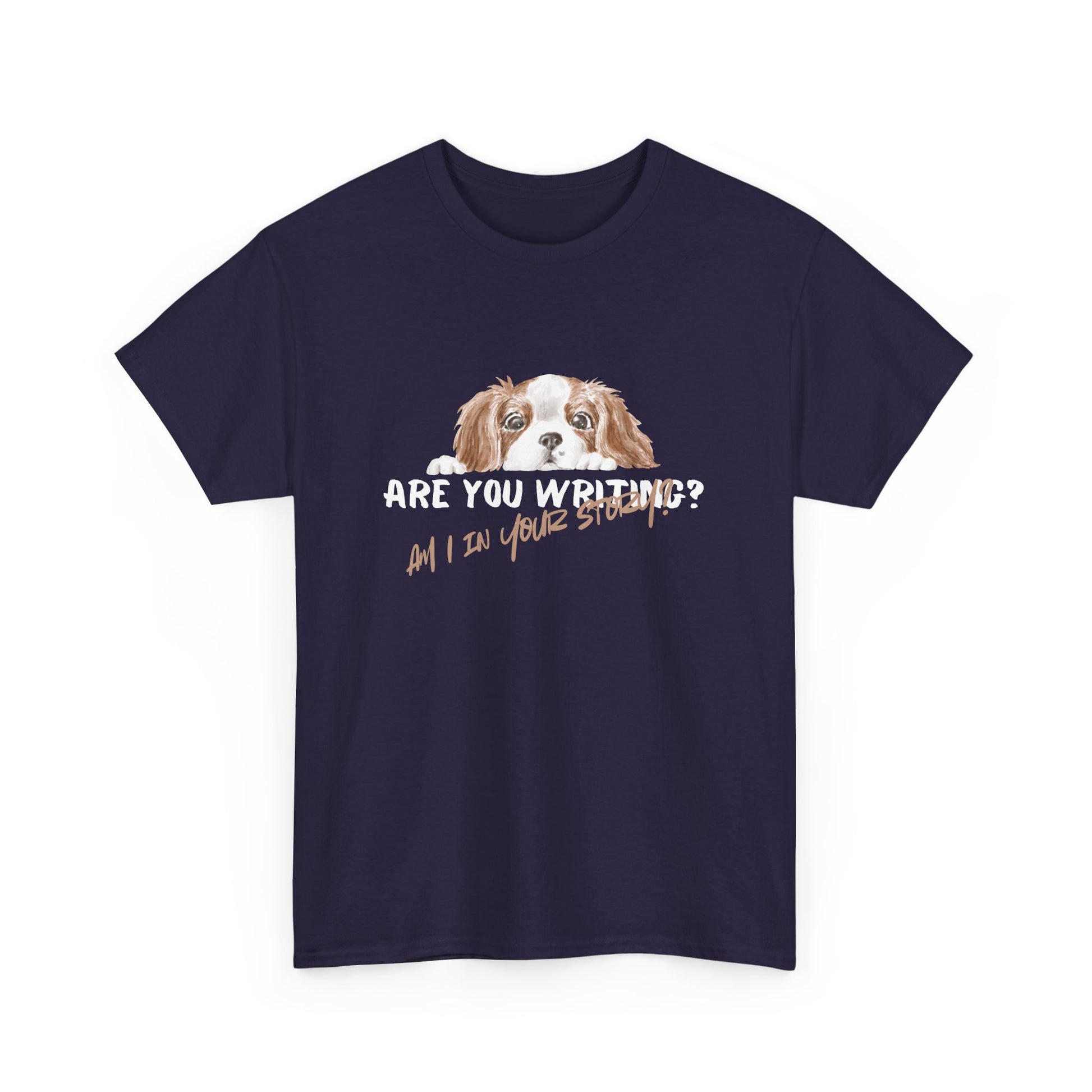 Unisex Heavy Cotton Tee - "Are You Writing?" Cute Dog Design