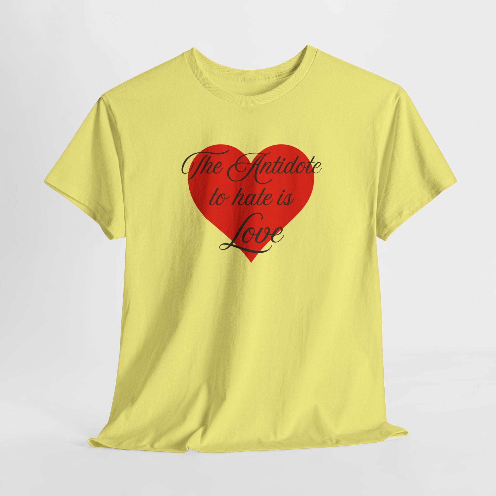 Unisex Heavy Cotton Tee - "The Antidote to Hate is Love" - Positive Vibes Shirt for All Occasions