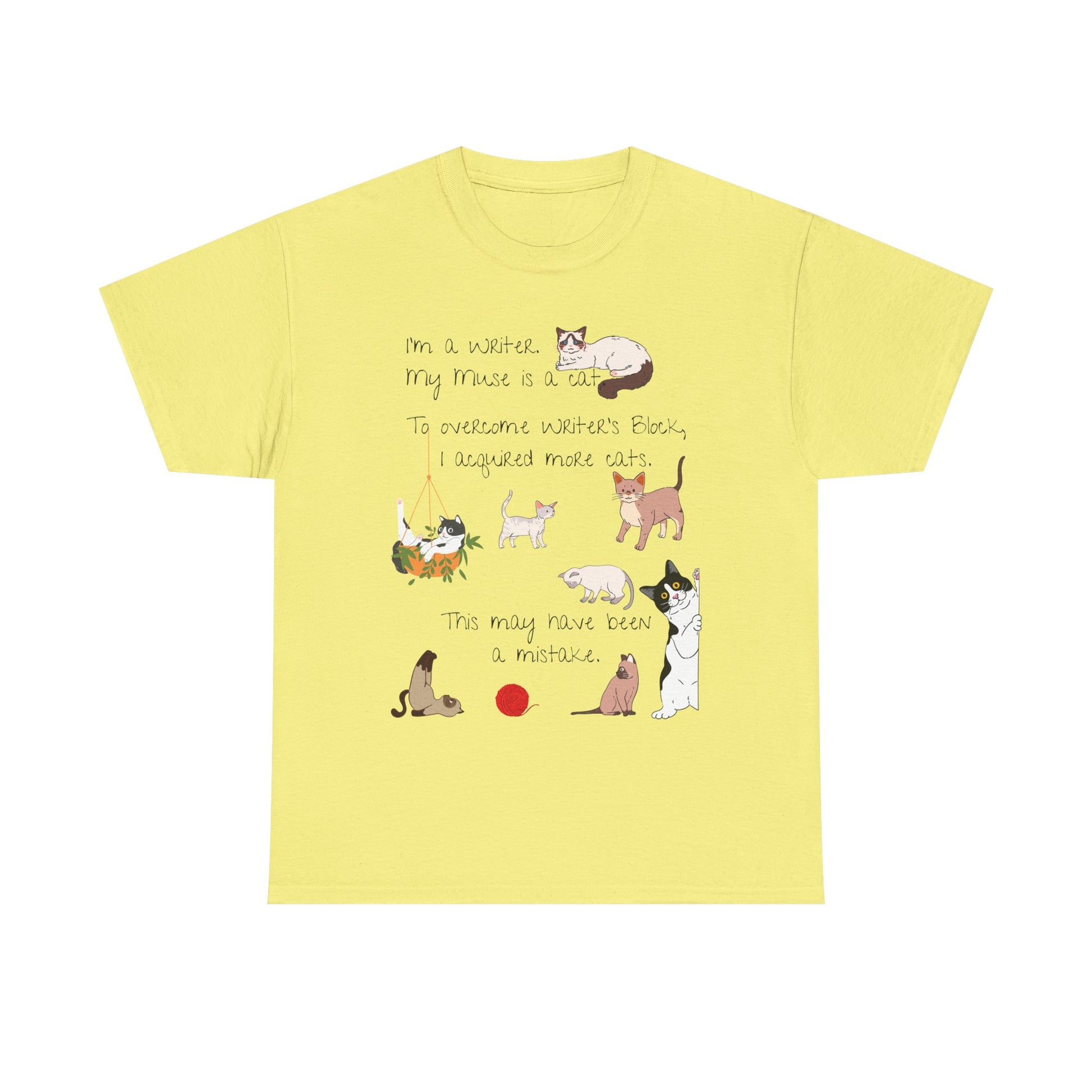 Writer's Block Cat Tee – Unisex Heavy Cotton T-Shirt for Cat Lovers
